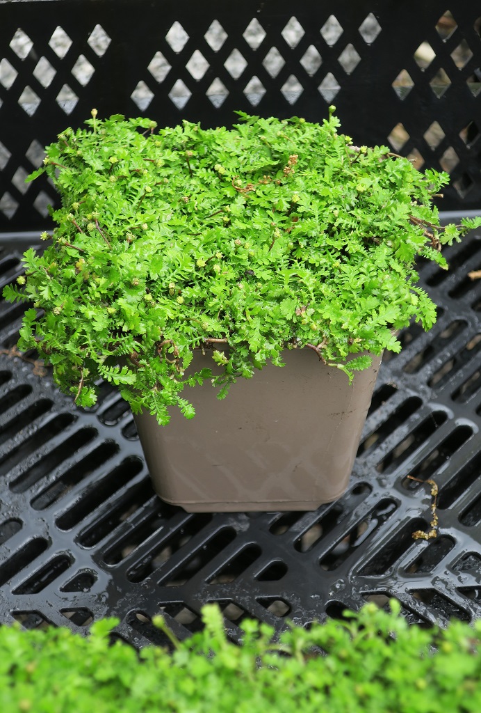 Wenn Moos durch mangelnde Feuchtigkeit/Luftfeuchte oder zu viel Sonne nicht bleibt, ist Cotula der ideale Ersatz. Mit zarten, farnartig gefiederten Blättern bildet sich ein dichter, grüner und flach bleibender Teppich.