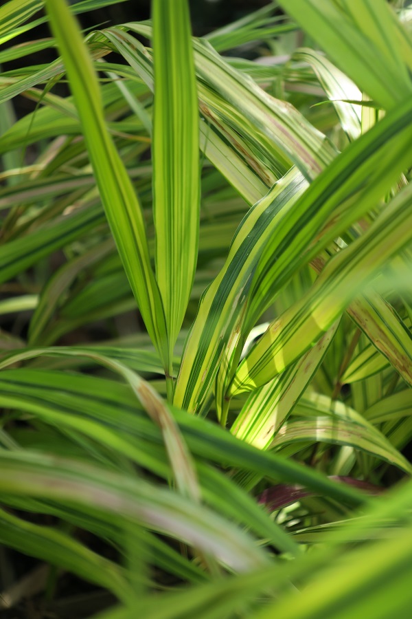 Blatt: länglich, ganzrandig, weich, glatt, gelbgrün gestreift