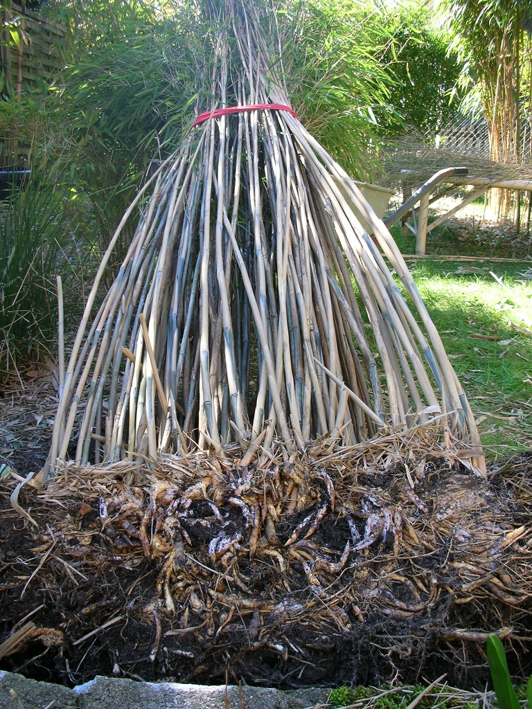 Die 2., für das Ausleben des Bambusses sicherlich bessere, aber arbeitsintensivere Möglichkeit: Sie verschließen die Folie nicht, sondern lassen einen ca. 40 Zentimeter breiten Ausgang offen. In diesem Bereich kann mit Laub oder Stroh aufgefüllt werden. Allerdings sollte dieser 'Ausgang' bis auf die Grabentiefe laufend kontrolliert und ausbrechende Rhizome sollten entfernt werden. Die über den Rand der Sperre kriechenden Rhizome müssen ebenfalls regelmäßig abgeschnitten und entfernt werden. So kann sich der Bambus ausleben, ohne sich in Ihrem Garten auszubreiten.