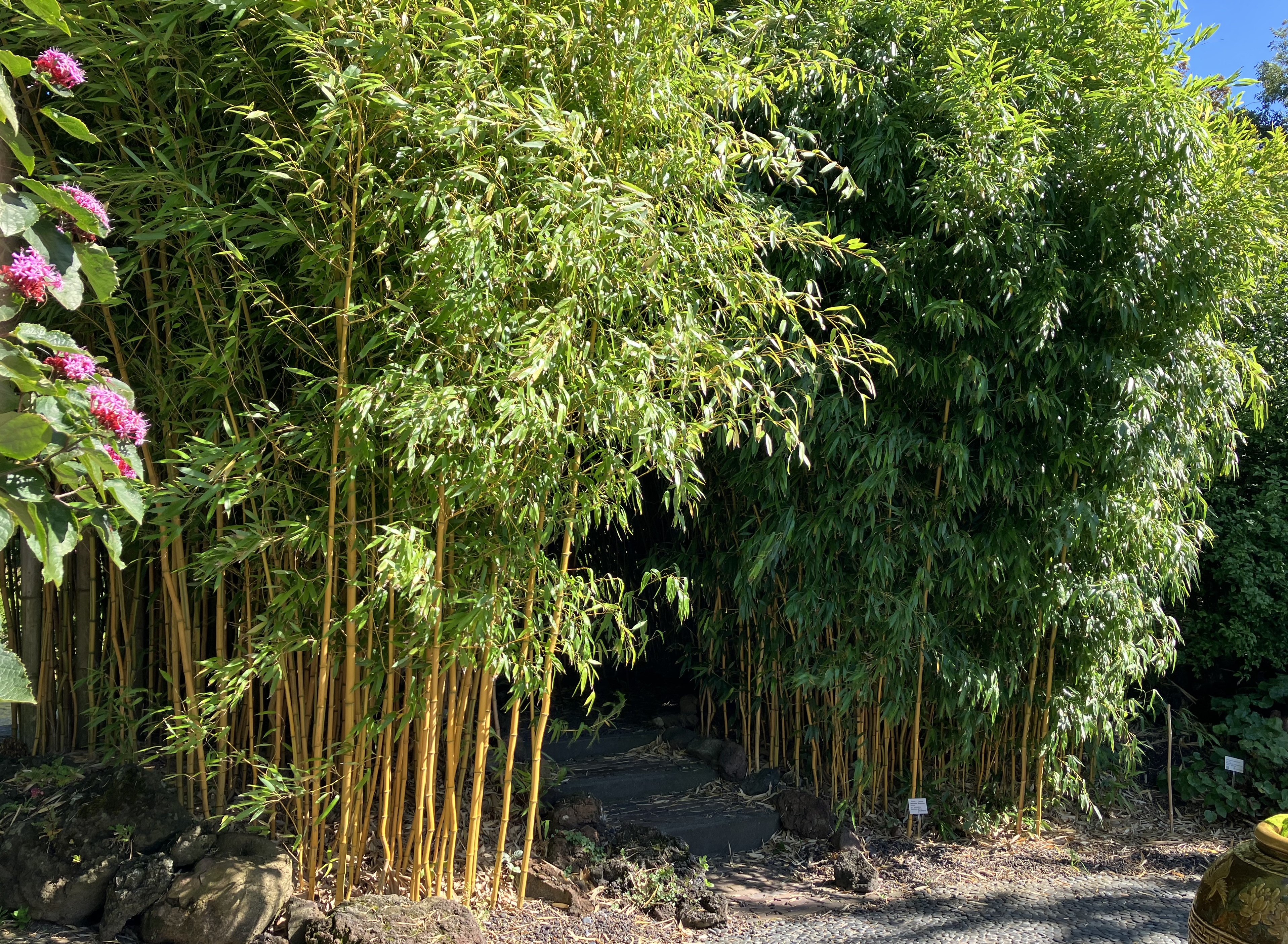 Phyllostachys mit den dekorativen, goldgelben Halmen sehr gut als höherer Sichtschutz auch für kleinere Gärten
