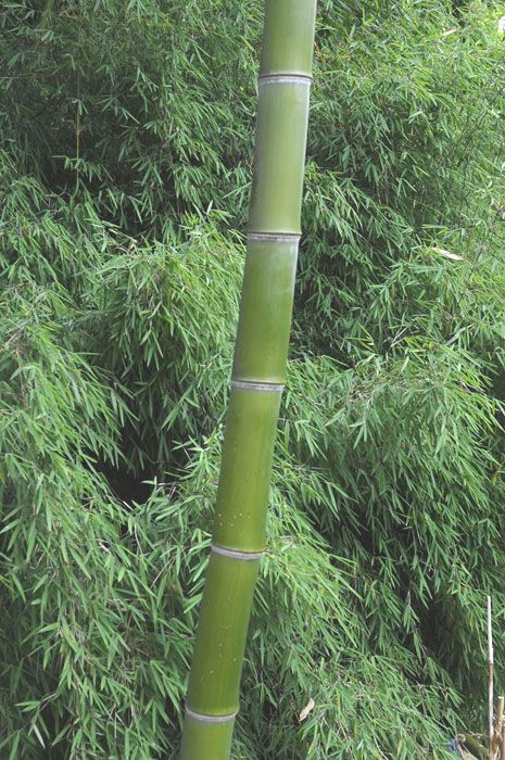 Höhe: 4 bis 6 Meter Halme: anfangs grün, leicht bemehlt, später grünlich bis gelblich, stabil, kräftig, bis 3,5 cm Ø Blätter: kleinere, glänzend grüne Blätter Wuchs: aufrechter Wuchs Standort: sonnigWinterhärte: bis -25°Platzbedarf ab 8 m² mit einer 100 cm breiten Rhizomsperre. Delikate Sprossen.