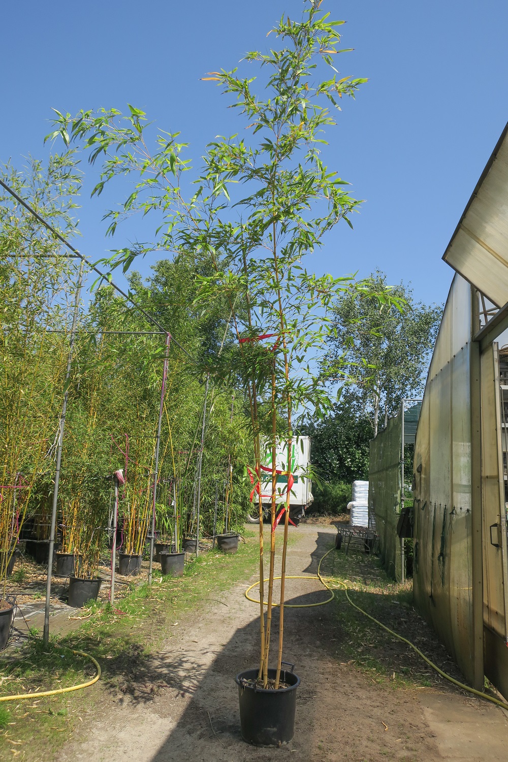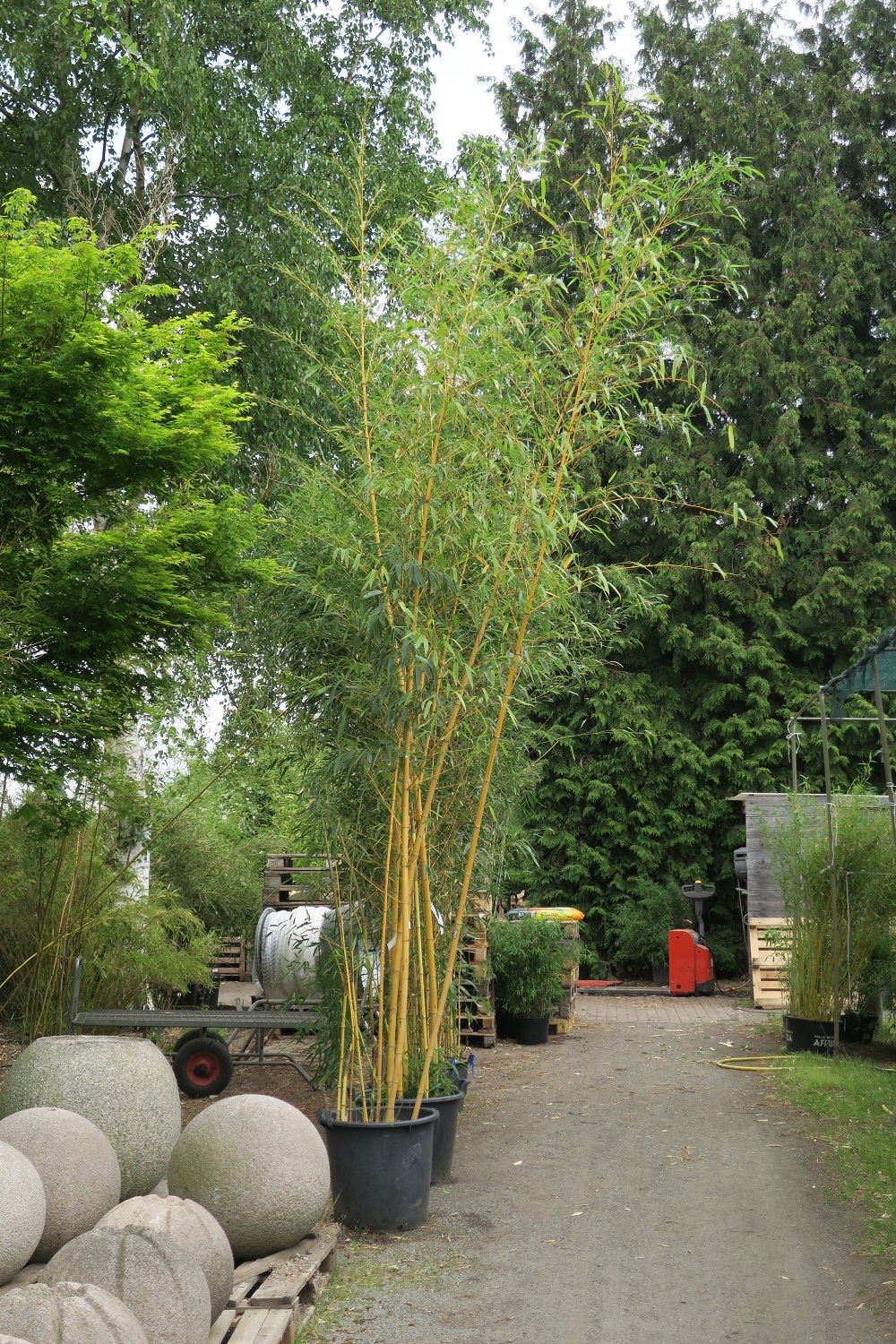Bei allen Sorten von Phyllostachys vivax sind im Container teilweise nur 1-2 hohe Halme. Dies liegt an dem größeren Halmabstand, der bei den Vivax sogar schon bei kleineren Pflanzen ausgeprägt sein kann.