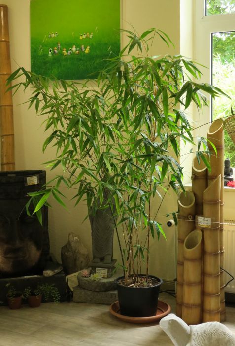 Da tropische Bambuspflanzen im Innenraum anfällig für Schmier- und Schildläuse sind, unbedingt für eine gute Belüftung sorgen. Zu geringe Luftfeuchtigkeit kann mit regelmäßigem Besprühen ausgeglichen werden.