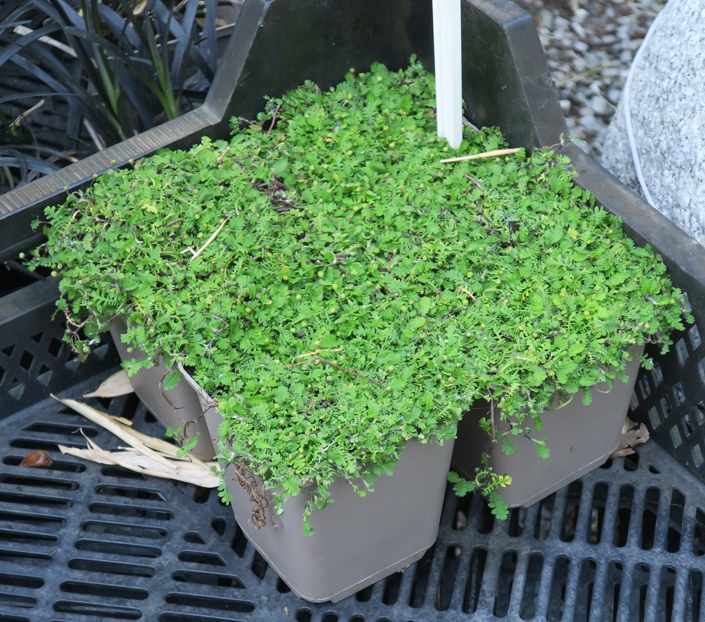 Wenn Moos durch mangelnde Feuchtigkeit/Luftfeuchte oder zu viel Sonne nicht bleibt, ist Cotula der ideale Ersatz. Mit zarten, farnartig gefiederten Blättern bildet sich ein dichter, grüner und flach bleibender Teppich.