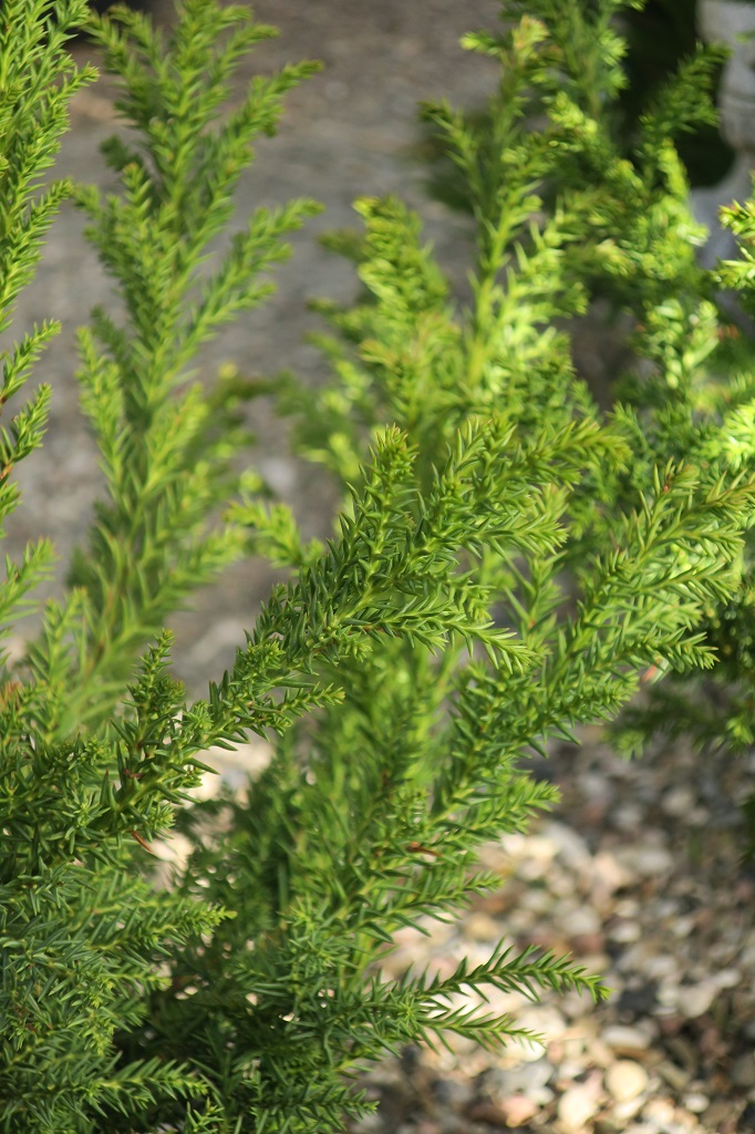 Wuchs: aufrecht, pyramidal, grüne kurzanliegende Benadelung, immergrün