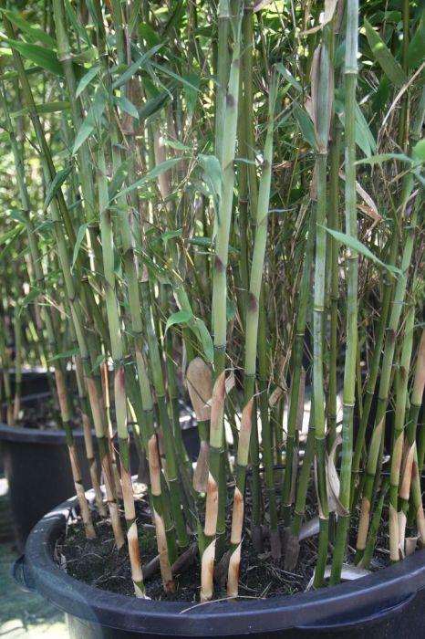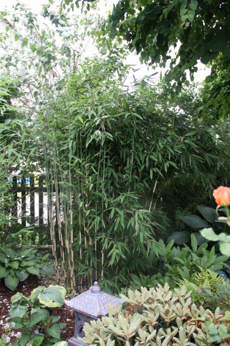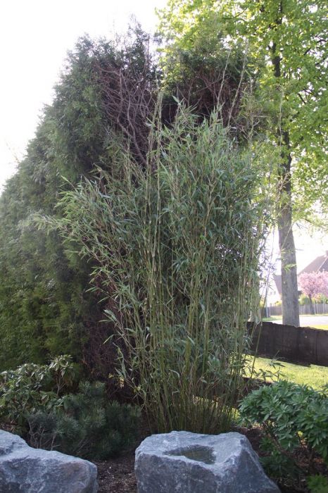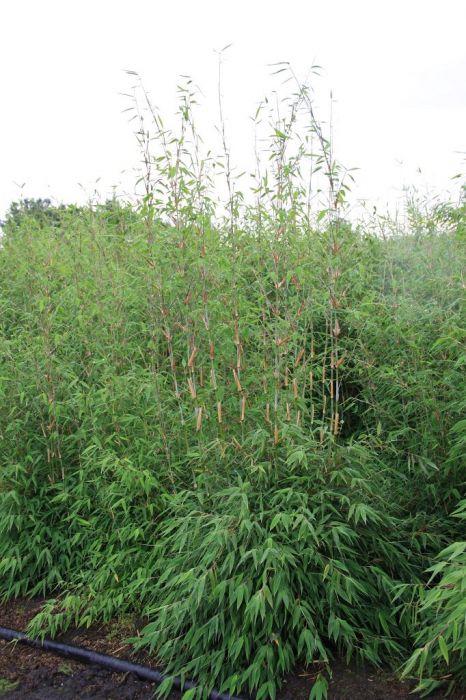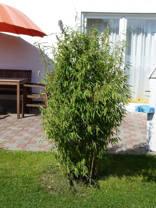 Endhöhe über 4 Meter. Für einen breiten Sicht-, Wind und Schallschutz, großer Solitär. Ein absoter Hingucker in Einzelstellung und als Bambushecke mit dekorativen Blättern.
