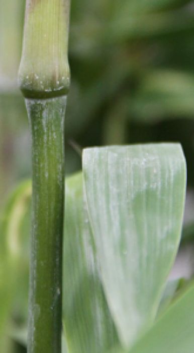 Halme: im Austrieb hellgrün mit rötlichen Halmscheidenblatt, rötlich ausfärbenden Halmscheiden, Halme anfangs bemehlt, später sattgrün sehr stabil und kräftig.