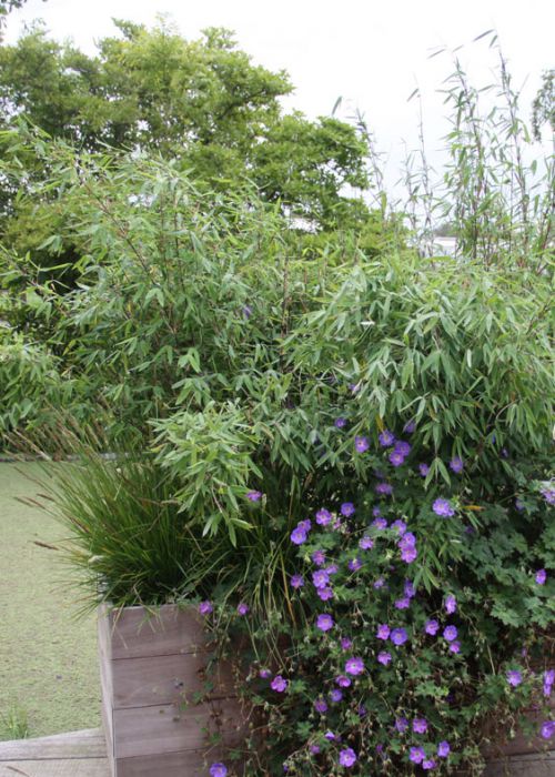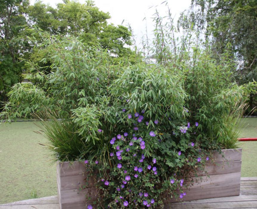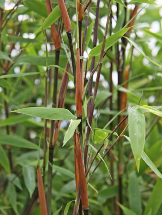 Verwendung: Ein dicht wachsender, sehr dekorativer Bambus mit rötlichen Halmen. Blickdichte Sichtschutzhecke, dekorativer Solitär, Begleitpflanze an Teich und Bachlauf, sehr schnittverträglich. Als Kübelpflanze ist Winterschutz erforderlich. Wertvoll.