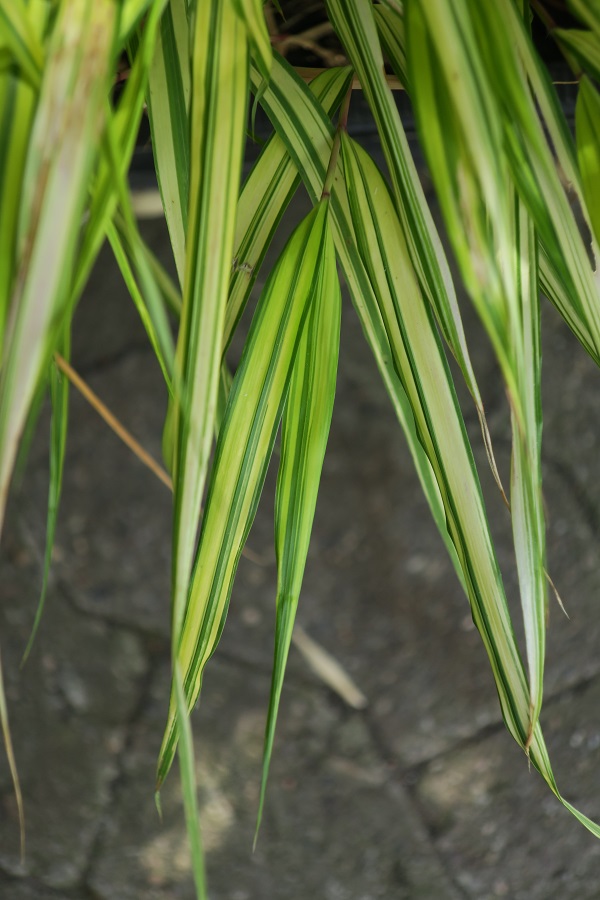 Blatt: länglich, ganzrandig, weich, glatt, gelbgrün gestreift