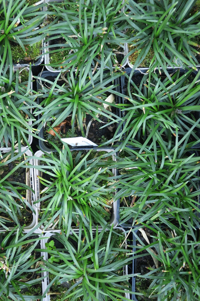 Blatt: grasartig, dunkelgrün, abgerundet, wintergrün
