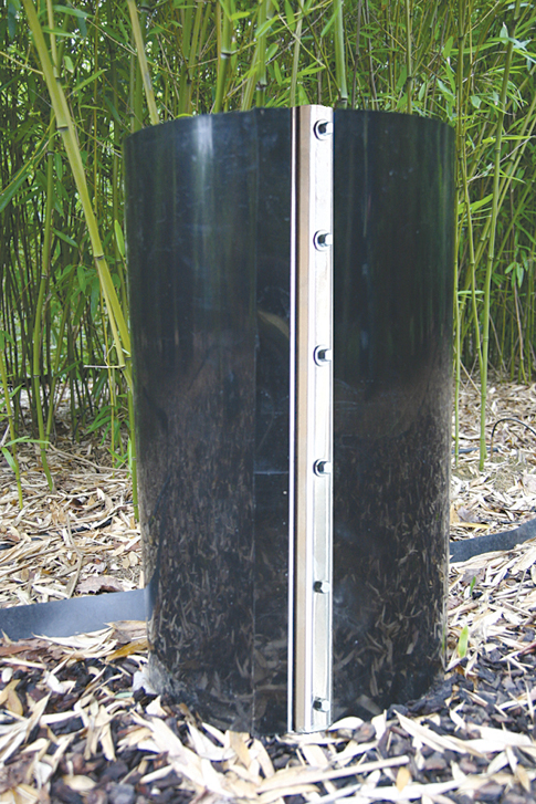 Heben Sie um die Pflanzfläche einen entsprechend tiefen Graben mit Spaten und Schaufel, Minibagger oder Grabenfräse aus. Stellen Sie die Sperre umlaufend in den Graben, so dass 5-10 cm über dem Bodenniveau sichtbar bleiben. Anschließend mit einer Sicherheitsverbindungsschiene verschließen. Dann den Graben wieder auffüllen und den Boden beidseitig gut verdichten.