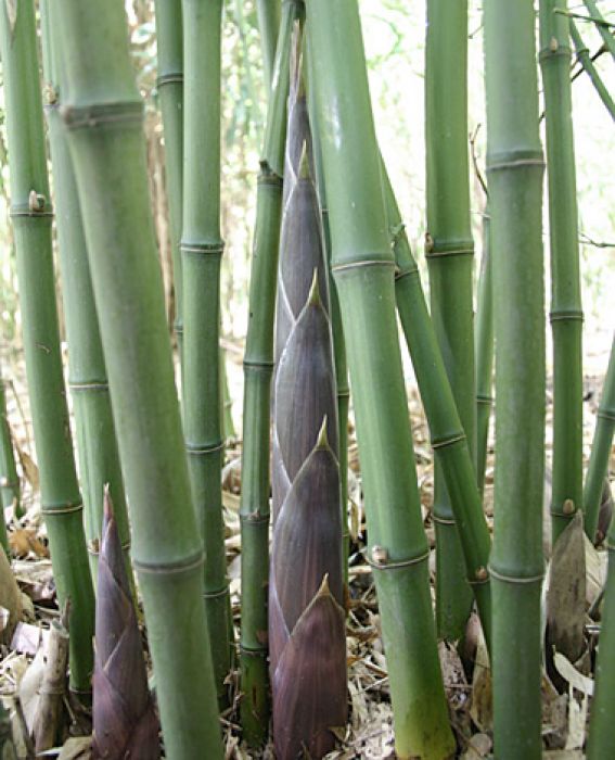 Knospen BambusHöhe: 4 bis 9 mHalme: dunkelgrün, im Alter gräulich bis gelblich, senkrecht, kräftig, stämmig, stabil, bis 6 cm ØBlätter: sattgrün, mittelWuchs: aufrecht, Spitze leicht bogig, starke AusläuferStandort: sonnig, geschützt, warme und milde GegendenWinterhärte: -18° bis -25°Verwendung: großer Solitär, hoher Sichtschutz, HainSprossen essbar, empfehlenswert