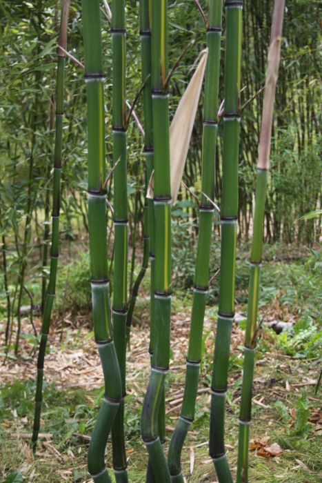 Höhe: 4 bis 6 Meter Halme: anfangs grün, leicht bemehlt, später grünlich bis gelblich, stabil, kräftig, bis 3,5 cm Ø Blätter: kleinere, glänzend grüne Blätter Wuchs: aufrechter Wuchs Standort: sonnigWinterhärte: bis -25°Platzbedarf ab 8 m² mit einer 100 cm breiten Rhizomsperre. Delikate Sprossen.