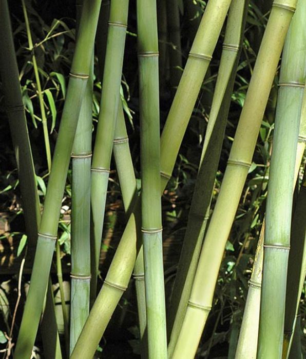Halme: hellgrün, in der Sonne gelblich , glatt, bis 40 mm ØBlätter: grün, klein, bis 15 cm lang und 2 cm breit