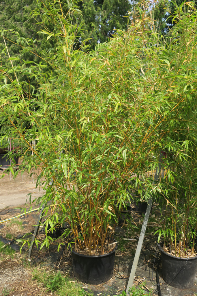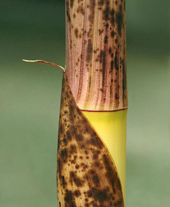 Eine der schönsten Sorten mit gelben Halmen und panaschierten Blätter.