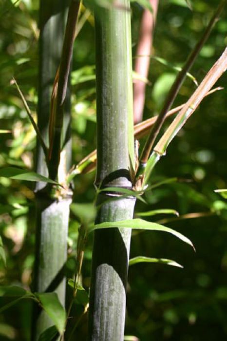 Halme: anfangs bläulich bemehlt, dann dunkelgrün, im Alter gräulich, in der Sonne oliv bis gelblich, ausgeprägte Nodien, kantiger Zweigansatz, senkrecht, sehr hartes Holz, sehr stabile Halme, bis 5 cm Ø