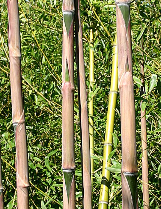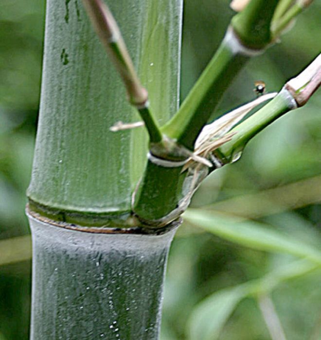 Halme: grün, ältere Halme oft gold schimmernd, relativ dick, bis 5 cm Ø, in warmen Regionen auch deutlich mehr