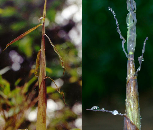 Wuchs: aufrecht, Spitze überhängend, starke Ausläufer