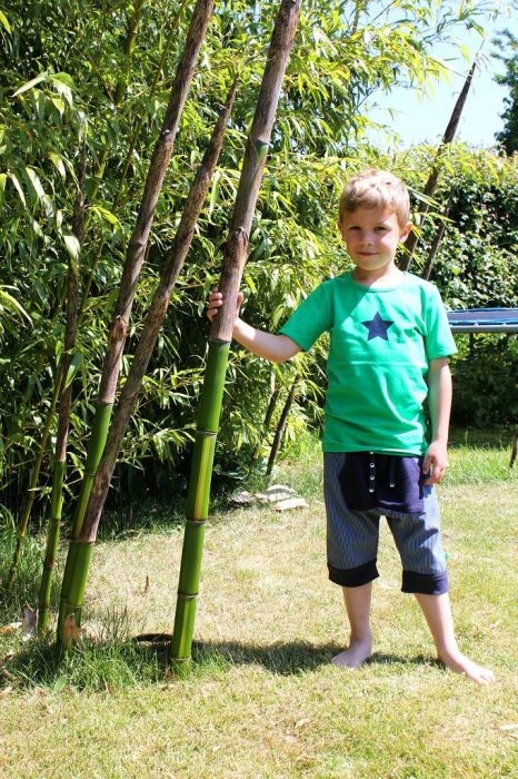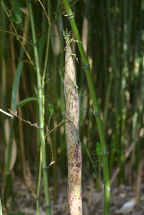 Bei allen Sorten von Phyllostachys vivax sind im Container teilweise nur 1-2 hohe Halme. Dies liegt an dem größeren Halmabstand, der bei den Vivax sogar schon bei kleineren Pflanzen ausgeprägt sein kann.